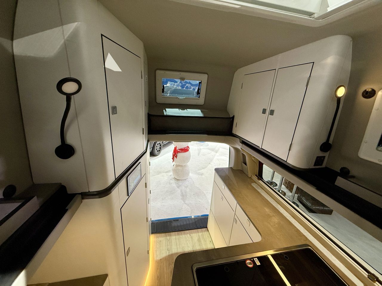 - Stehhöhe von 2,09 m bis 1,90 im Wohnraum (bei hochgeklapptem Bett)