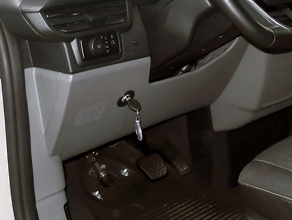 Diese Bear-Lock-Lenksäulensperre verhindert mechanisch die Lenkung des Fahrzeugs. Um Gefahren vorzubeugen und Unfälle zu vermeiden, ist sie zusätzlich mit einer elektronischen Einheit ausgestattet, die den Fahrzeugstart verhindert – hierbei wird je nach Fahrzeug die Zündung, der Anlasser, die Kraftstoffzufuhr etc. unterbrochen. Innerhalb von Sekunden erfolgt die bequeme Bedienung mit einem der Schlüssel. Das Fahrzeug wird effektiv vor Diebstahl geschützt, da die Wegfahrsperre aus gehärtetem Stahl und einem gekapselten Schloss gefertigt ist. Zudem ist sie pulverbeschichtet und wird mittels Abreiß-Schrauben bzw. -Muttern fest unter/hinter der Lenkradverkleidung an vorhandenen Punkten der Fahrzeugkarosserie befestigt.