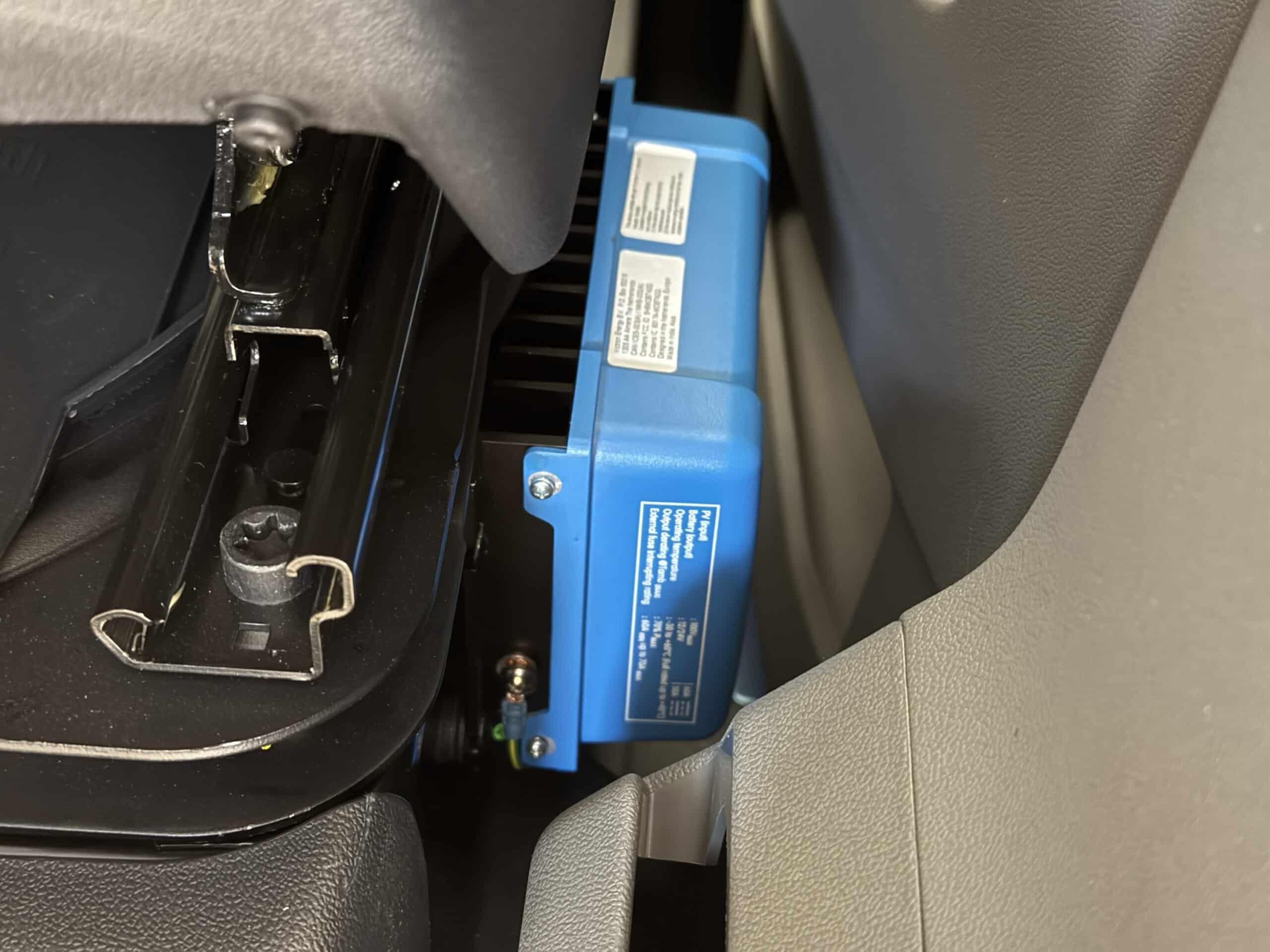 Die Fotos der Einbausituation zeigen den 50 A Regler, der von der Größe jedoch baugleich ist.